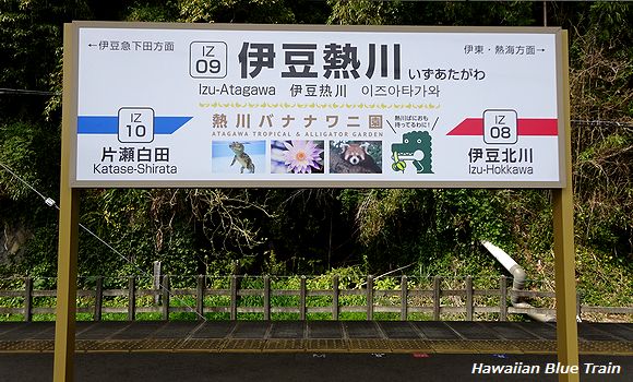 「伊豆熱川」 駅の両側をトンネルに挟まれている。昭和36年12月10日の開業時に設置。 2009年7月15日 |