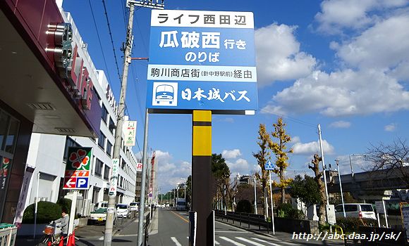 | その名の通り、ライフ西田辺店の目の前にある。日本城タクシーの「ライフ西田辺」停留所。。 ライフ西田辺にて 2015年12月17日 |