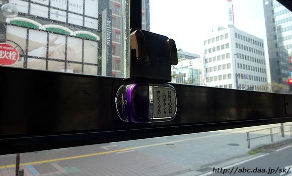 | 原車にはカーテンが付かないこの車。 降車ボタンに金具を付けて、そこにカーテンを掛けるのが仕様のようです。 大分交通 「大分 200 か ・783」 [1]新川経由 豊海(5号地)行、車内にて 2019年4月21日 |