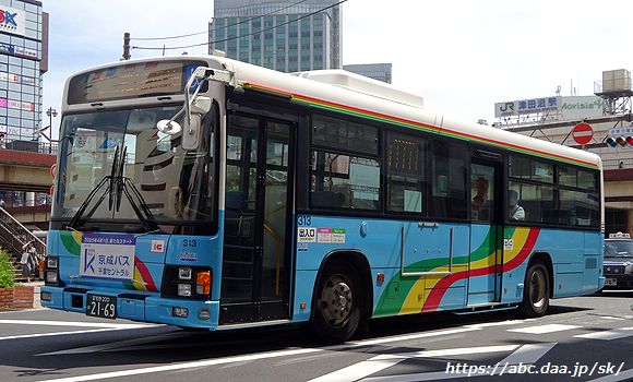 | 1周回って、習志野新京成バスと合併するとは思わなかった元松戸新京成車。 京成バス千葉セントラル 313 「習志野 200 か 21-69」 津田沼駅にて 2025年6月6日 |