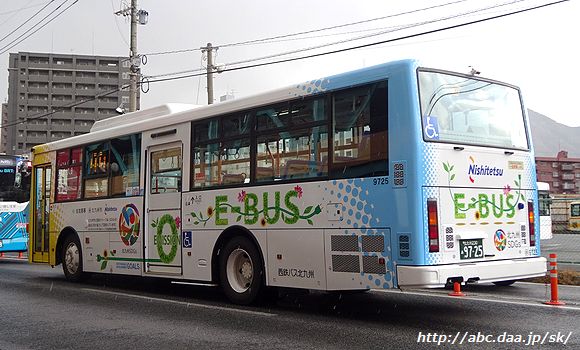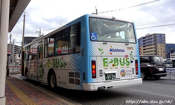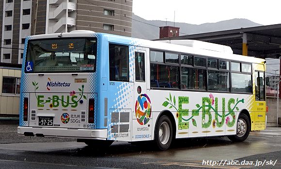 | 「北九州市 SDGs未来都市計画」の一貫として導入されたレトロフィット電気バス。 西鉄バス北九州 9725 「北九州 230 か 97-25」 米町-砂津にて 2022年12月18日 |