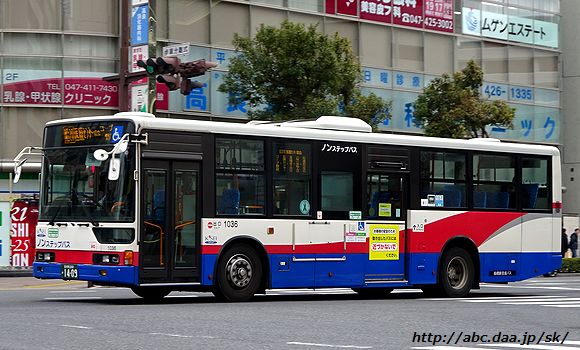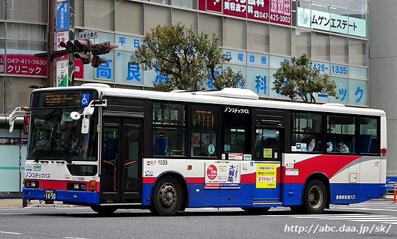 | 船橋新京成バスの大型路線車としては、UDトラックス(旧:日産ディーゼル)の最後の導入車。 1030 船橋駅北口にて 2012年3月22日 |