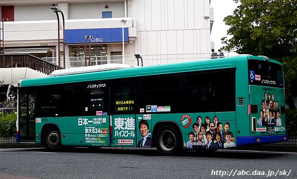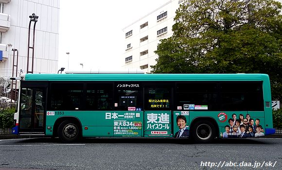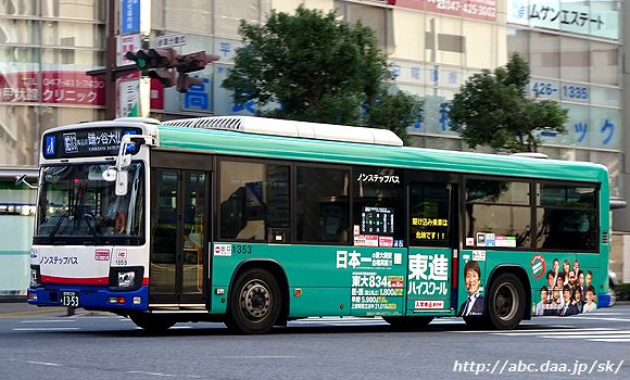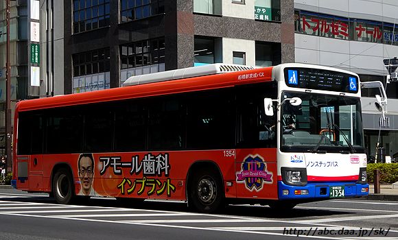 | 「千葉ジェッツ×船橋東武」コラボラッピングバス。 [船03]馬込沢経由 鎌ヶ谷大仏行。 1353 船橋駅北口-天沼にて 2022年9月4日 |