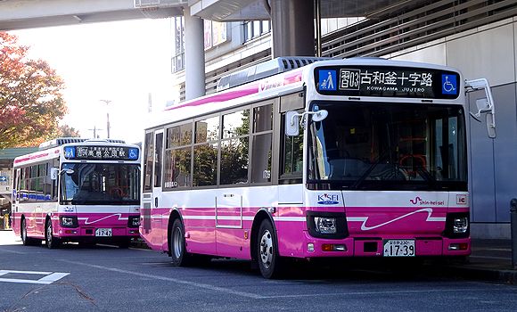 | [習03]古和釜十字路行。 1739 [習04]千葉徳洲会病院経由 高根公団駅行。 1742 北習志野駅にて 2024年11月17日 |