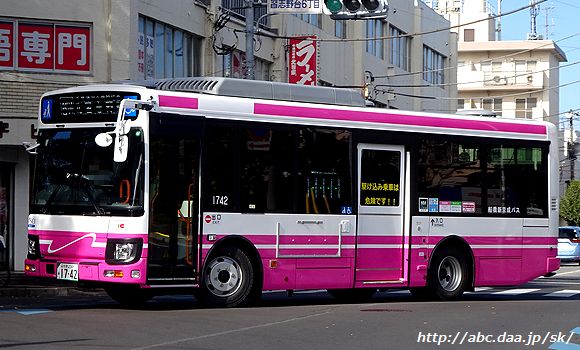 | 新デザイン車両で初の中型車となる、鎌ヶ谷営業所の1738号車。 2022年9月20日(火)に金杉台線で運行開始しました。 [船34]医療センター経由 三咲駅行。 1738 船橋駅北口-天沼にて 2022年9月20日 |