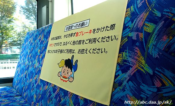 | 最近の新京成車は、四半世紀は続いてきたと思われるお馴染みの「手すり、吊皮等によくおつかまり下さい」の注意書きが無いんです… 3431 |