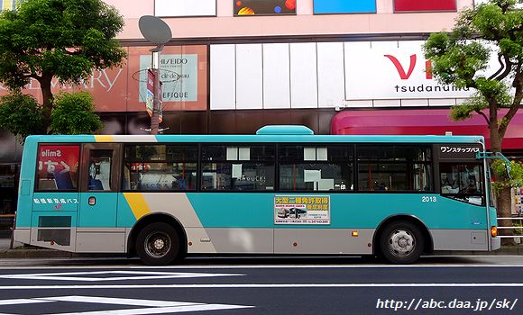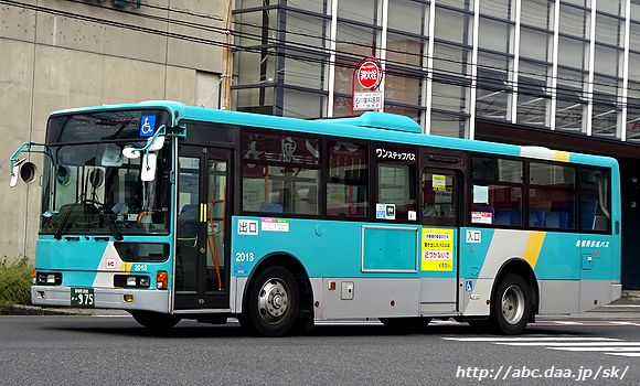 | 東進ハイスクールラッピングを1037号車に引き継ぎ、ラッピング解除された1013号車。 約10年間、ボディのサイドが日差しから守られて来たので、エメラルドグリーンの鮮やかさが維持できてる? 1013 船橋駅北口-天沼にて 2019年9月7日 |