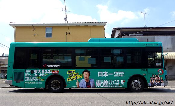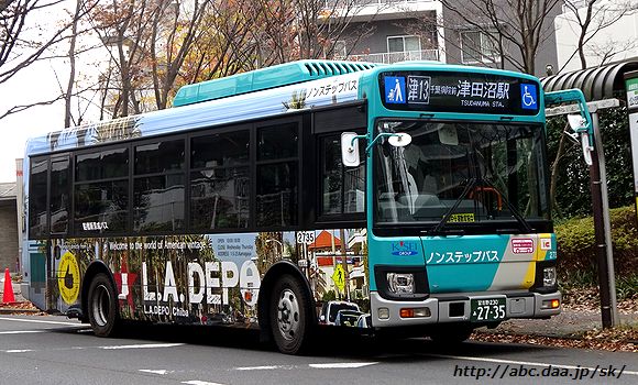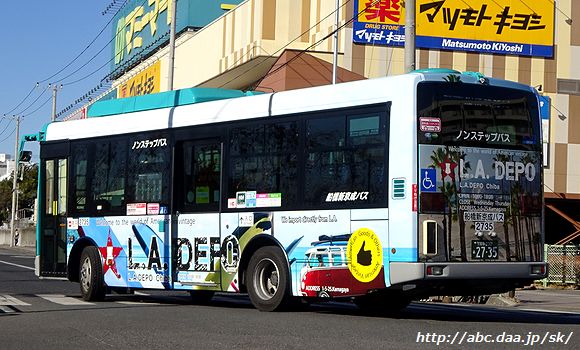 | 三井住友トラスト不動産のラッピングバスとなった2703号車。 【習志野新京成バス】 2703 津田沼駅にて 2014年3月16日 |
