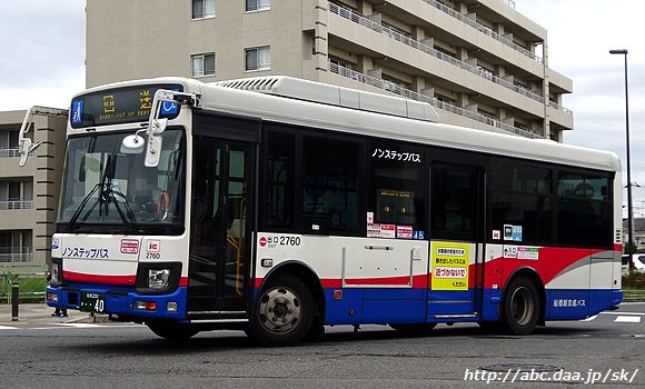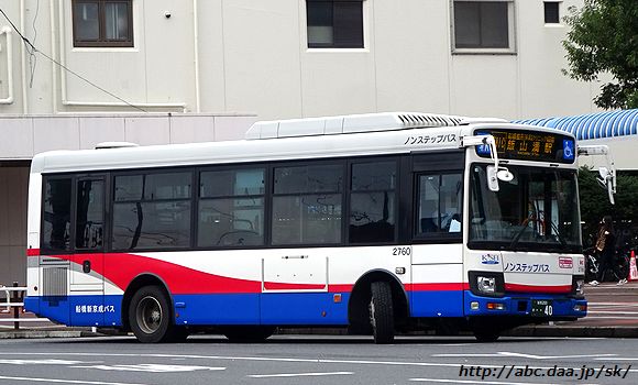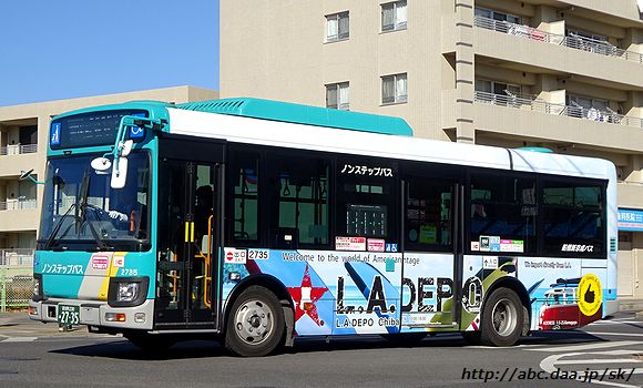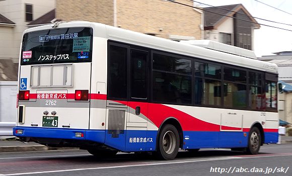分社化後の初期に導入されたタイプ。2401(現:2751)・2701・2702・2703はこのスタイル。 【習志野新京成バス】 2703 千葉病院前にて 2009年8月7日 |