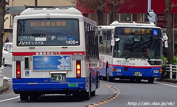 | [高01]さつき台行。 1009 [習04]千葉徳洲会病院経由 北習志野駅行。 1001 高根公団駅にて 2019年3月6日 |