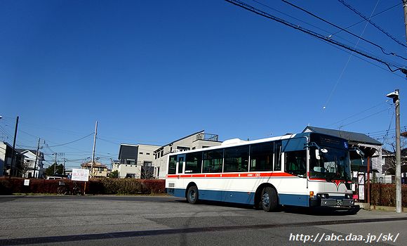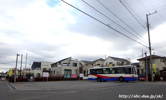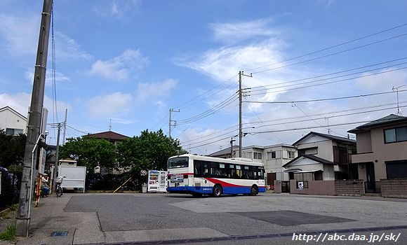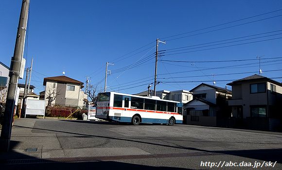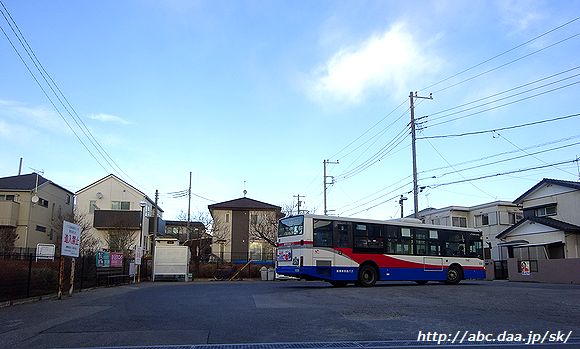 | なんて事のない住宅街に突如として現れるさつき台の折返所。 古和釜線と小室線に挟まれた地域の貴重な交通手段である。 [高01]高根公団駅行。 1042 さつき台にて 2017年2月14日 |