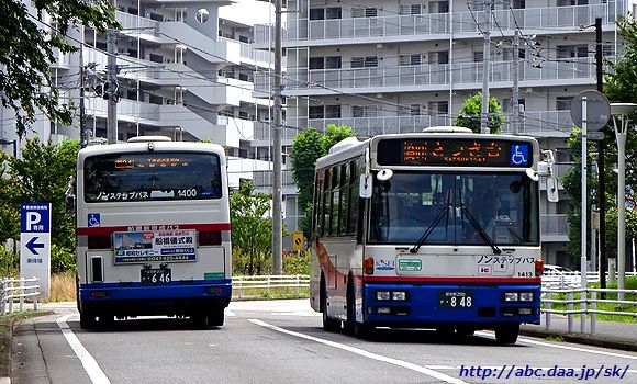 | [高01]さつき台行。 1405 [習04]千葉徳洲会病院経由 北習志野駅行。 1046 高根公団駅-高根台保育園にて 2018年6月18日 |