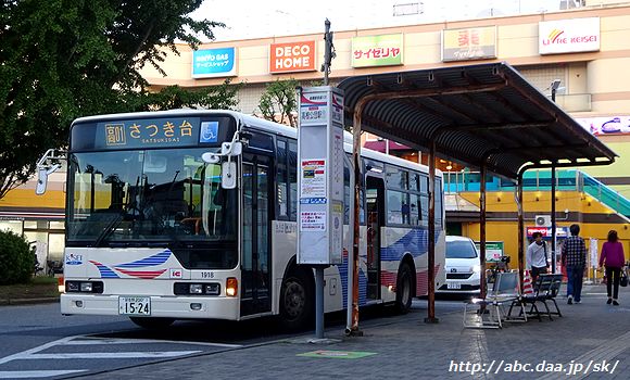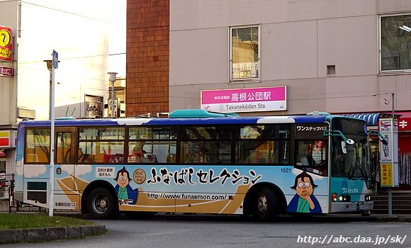 [高01]さつき台行が停車中の高根公団駅ロータリー。 さつき台行は、駅ビルに面した乗り場から発車する。 高根公団駅にて |