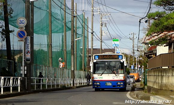 | [高01]高根公団駅行。 1405 [高01]さつき台行。 1048 高根公団駅-高根台保育園にて 2018年12月2日 |
