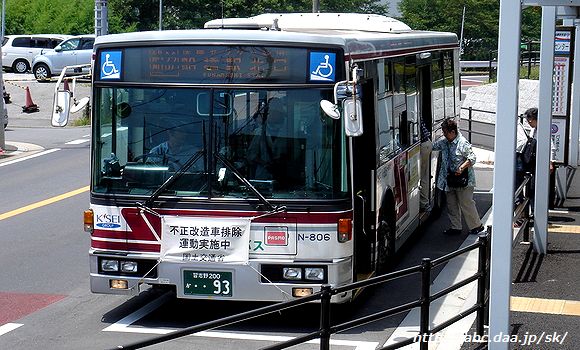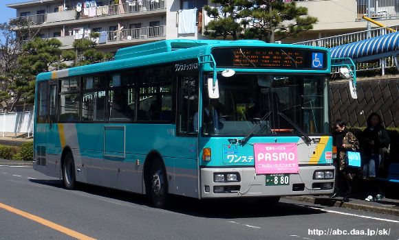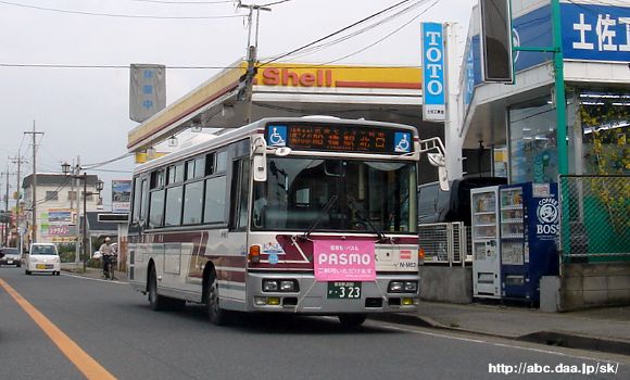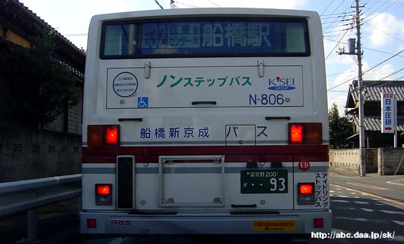 方向幕時代のN-806。 医療センター経由便は青地に白字の方向幕を採用し、誤乗対策を行っていた。 [船32]医療センター経由 船橋駅北口行 N-806 |
