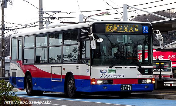 船橋駅北口行。 1042 [南線]東部学習センター経由 新鎌ヶ谷駅行。 1727 鎌ヶ谷大仏-咲が丘一丁目にて 2018年2月23日 |
