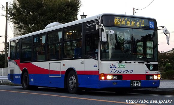 | 2022年3月18日までは、金杉台団地行はD乗り場でした。 [船32]医療センター経由 金杉台団地行。 1040 船橋駅北口にて 2017年1月29日 |