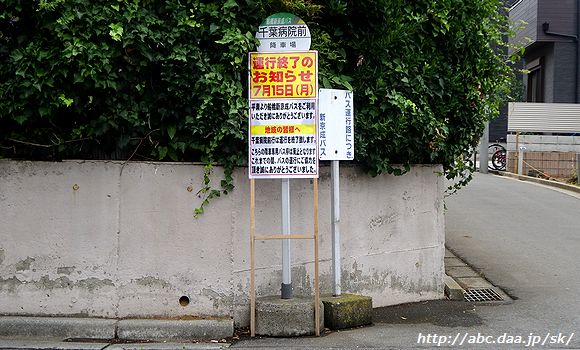 | [津10]の系統廃止に伴い、千葉病院前のロータリーでの折り返しが消滅しました。 「運行終了のお知らせ」 降車場。 千葉病院前にて 2024年7月15日 |