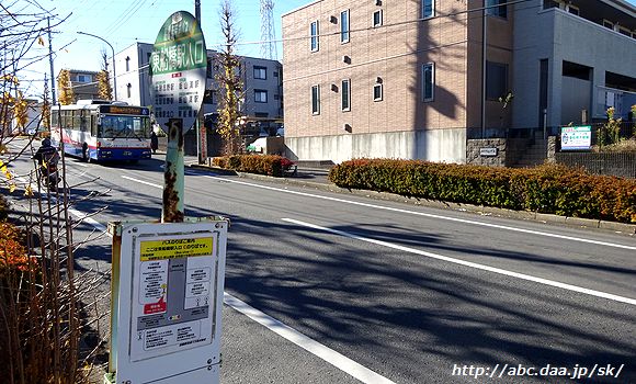 | 一時期、前原線にだけ?登場した謎のポール。 デザインは電鉄時代の物だけど、社名は習志野新京成バス、停留所名と行先は後からプリントアウトした物を貼っているという特殊仕様。 既存の電鉄ポールよりちょっとだけ背が低くて、使用期間もちょっとだけだった。 飯山満二丁目自治会館にて 2009年9月20日 |
