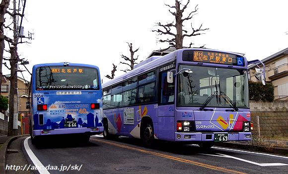 県立松高前行。 3057 [松12]北松戸駅経由 松戸駅東口行。 3028 北松戸駅にて 2017年1月8日 |