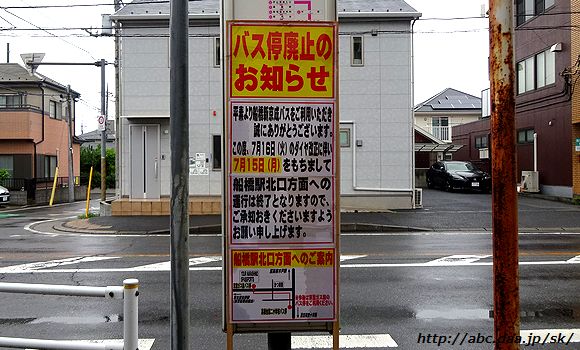 | 「バス停廃止のお知らせ」 船橋駅北口方面。 高根台第二小学校にて 2024年7月15日 |