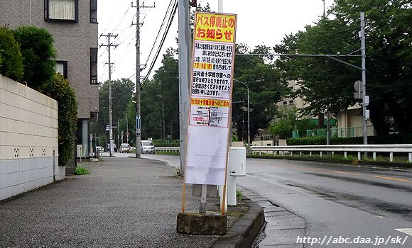 | 「バス停廃止のお知らせ」 古和釜十字路方面。 高根台第二小学校にて 2024年7月15日 |