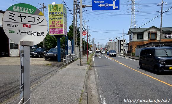 | 新木戸停留所で、八千代緑が丘駅方面の系統と分岐して1つ目「大和田新田西」停留所。 大和田新田西にて 2018年9月11日 |