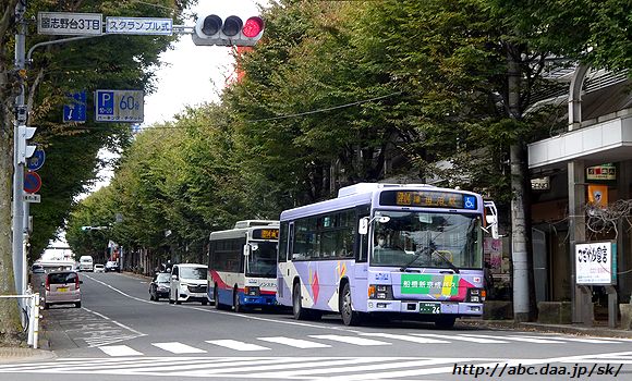 自衛隊前停留所周辺の道路が改良されるまで運行されていた区間便。 [習07]第二小学校入口経由 自衛隊前行。 2015 |