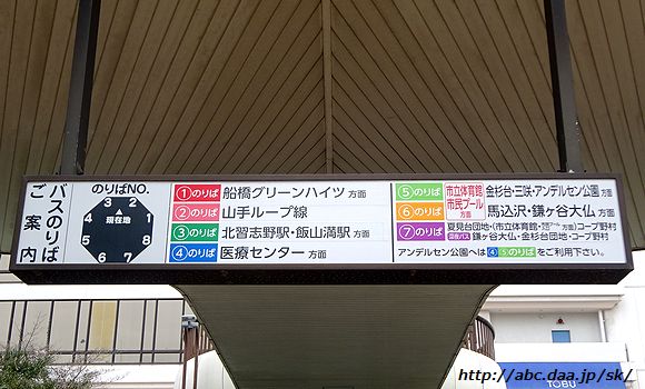 | Cのりば [船20]コープ野村・[船32]金杉台団地 [船33]鎌ヶ谷大仏・[船34]三咲駅・[A30]アンデルセン公園 |