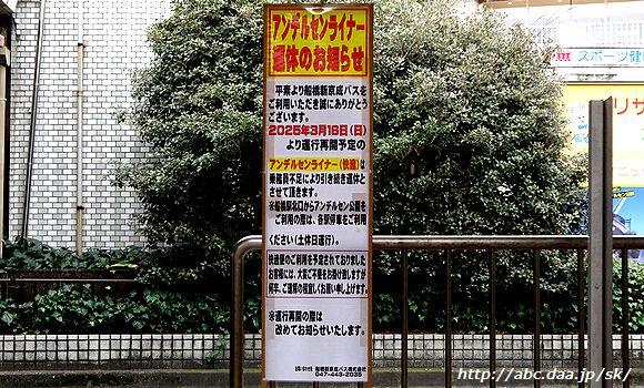 | アンデルセンライナー運休のお知らせ。 船橋駅北口にて 2025年3月11日 |