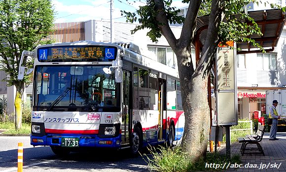 | [高01]さつき台行。 1734 [習04]千葉徳洲会病院経由 北習志野駅行。 1733 高根公団駅にて 2018年9月13日 |