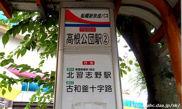 | 以前はここにもう1つ乗り場があり、[東3]東船橋駅行が発着していたが、東葉高速線の開通と共に路線が短縮され[飯01]飯山満駅行になり、その数年後に路線自体が廃止になってしまった。 高根公団駅にて |