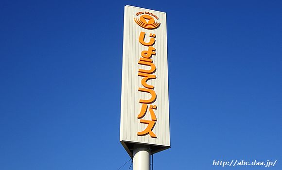 川沿営業所に建つ「じょうてつバス」の看板。 川沿5条2丁目にて 2016年4月27日 |