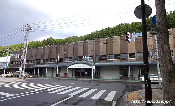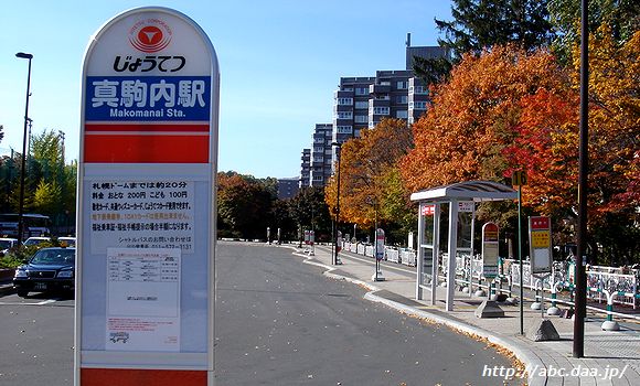 平岸通り沿いに、バス乗り場が並ぶ。 真駒内駅にて