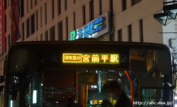 2016年3月現在のミッドナイトアロー運行系統。 渋谷駅西口にて 2016年3月5日 |