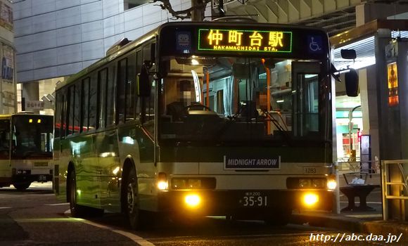 午前1時30分発、溝の口駅行・青葉台駅行・新羽営業所行。