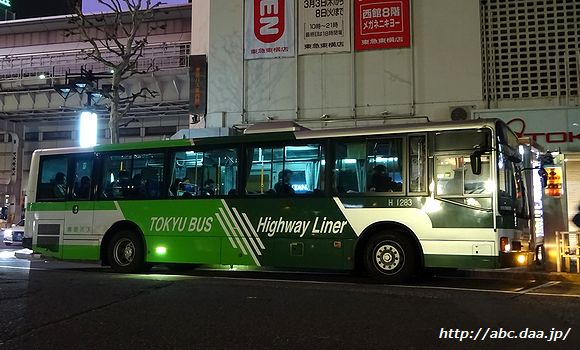 渋谷駅西口の深夜急行バスの運行は、1時00分発の青葉台駅行から始まる。