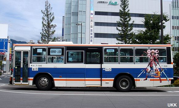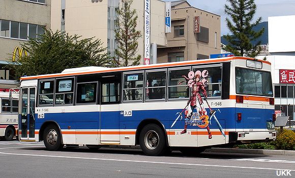 F-946 2010年9月15日 上田駅前にて 車体左側の真田幸村ラッピング。 |