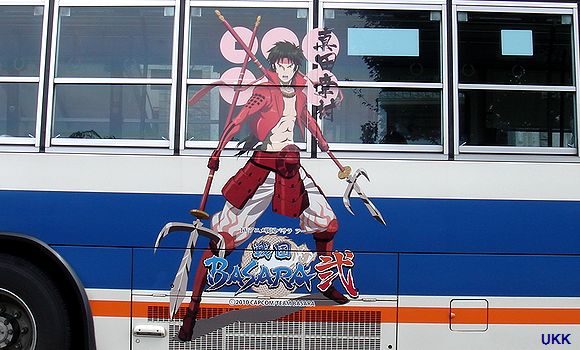 アニメ「戦国BASARA弐」の放送開始を記念して、真田幸村ラッピングバスが登場。 |