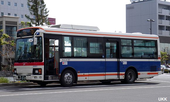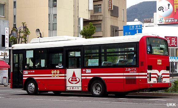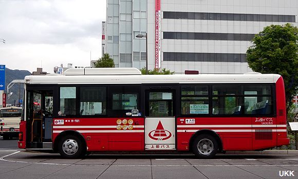 扉に書かれた上田バスの文字が印象的な新塗装。 H-101 2013年5月17日 上田駅前にて |