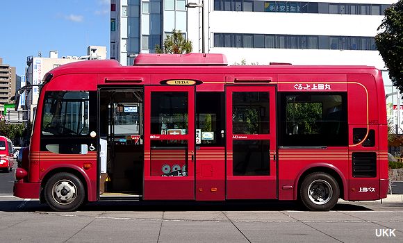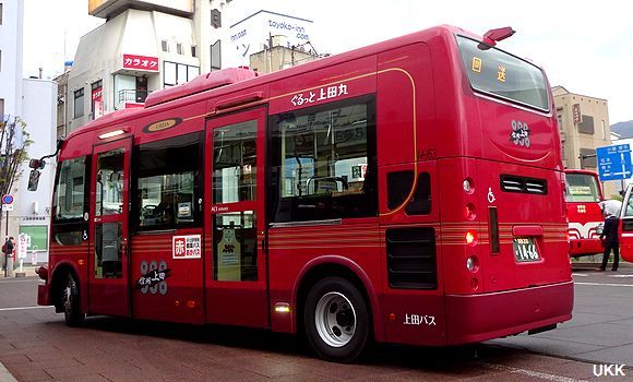 上田市街地循環バス 赤バス。 H-163 2021年5月1日 上田駅前にて |