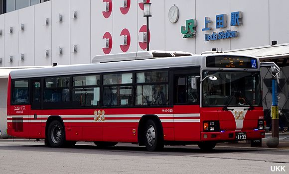 菅平高原線、上田駅行。 I-055 2025年3月13日 上田駅前にて |