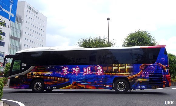 草津温泉行。 I-171 2021年7月24日 上田駅前にて |
