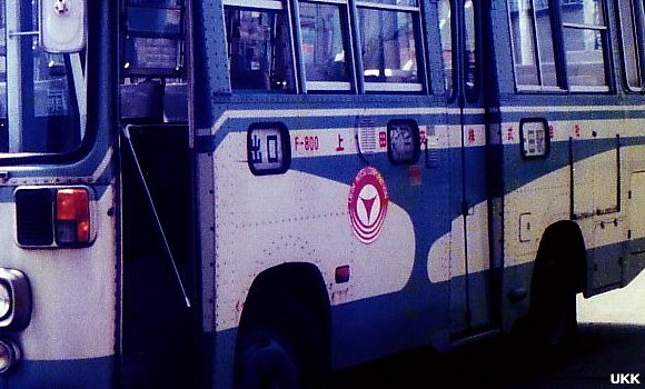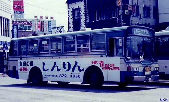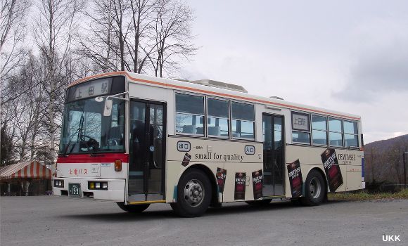 車体の左右の窓下部分をラッピングに包まれたラッピングバス。該当車両はN-932。 長らくダイドードリンコがスポンサーになっており、ダイドーの商品戦略によってラッピングの内容が変わる。 以前は飲料水の広告であったが、撮影当時は進行方向左側がダイドーデミタスコーヒー、右側がダイドーブレンドコーヒー。 尚、このN-932は旧塗装時代にラッピングを纏い、新塗装への塗り替え時にも広告掲載中であった為、ラッピングの無い部分だけ新塗装に塗り替えられている。その為、もしこのラッピングを剥がすと、新塗装の車両に、ラッピング状に旧塗装が残る。 上電バスで、最後まで旧塗装の部分が残っていた車両。