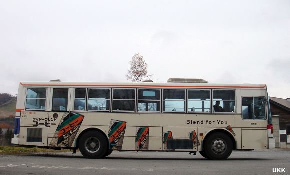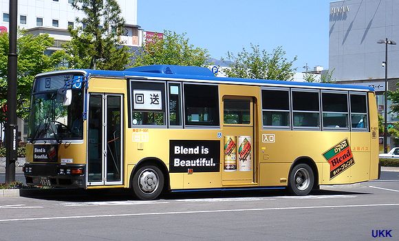 車体の前後左右全てを黄色いラッピングに包まれたラッピングバス。該当車両はN-963。 導入当初からダイドードリンコがスポンサーになっており、よ〜く見るとラッピングの隙間から元東急バスの証である赤帯が見えるが、普段は黄色いベールに包まれていた。