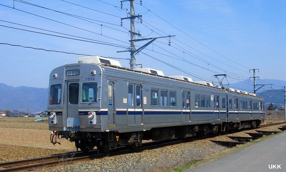 舞田駅前から上田方面に向かって沿道があり、架線柱は道路と反対側に設置されている為、非常に撮影がし易い撮影スポット。 快晴の日には、遠くに見える山々をバックに塩田平を駆け抜ける別所線を捉える事が出来る。 中野-舞田にて 2007年4月6日 |