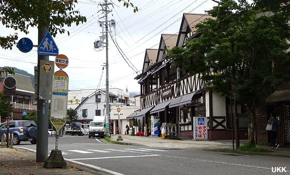 右手に見えるのは、草軽交通が経営する売店「駅舎旧軽井沢」。 旧軽井沢にて 2016年9月30日 |