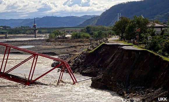 | 台風19号の影響で崩落した、上田電鉄