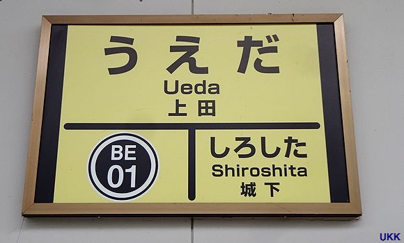 | 別所温泉行電車が発着する城下駅。 2020年10月4日 城下にて |