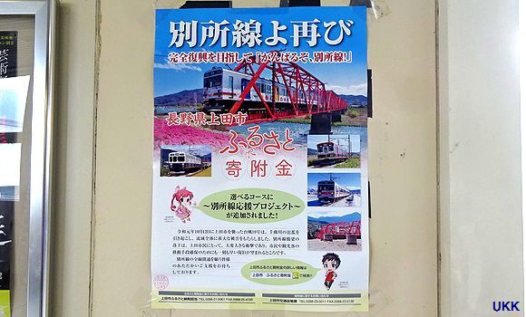 | 別所線上田駅からしなの鉄道上田駅へ向かうコンコースに掲示されていた寄付金を募る案内。 2020年10月4日 上田にて |